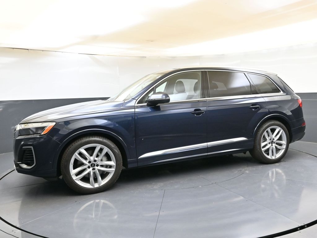 2025 Audi Q7 Premium Plus, Waitomo Blue Metallic, Adaptive cruise assist with lane guidance, Blind Spot Warning, 3.0L TFSI, 8-Speed Automatic with Tiptronic, quattro, Black Leather, 7-Pin Adapter, AM/FM radio: SiriusXM w/360L, Auto-dimming door mirrors, Auto-dimming Rear-View mirror, Bang & Olufsen Premium Sound System with 3D Sound, Comfort Adaptive Air Suspension, Control Buttons in Gloss Black with Haptic Feedback, Convenience Package, Dual-Pane Acoustic Glass For Side Windows, Executive Plus Package, Exterior Parking Camera Rear, Four-Zone Automatic Climate Control, Front fog lights, Front Seats with Ventilation, Garage door transmitter: HomeLink, Heated Front Bucket Seats, Heated Rear Seats, Heated Steering Wheel, Illuminated Door Sills, LED Interior Lighting Package Plus, Memory seat, Navigation system: Audi MMI Navigation plus with Touch Response, Outside temperature display, Power Liftgate, Power moonroof: Panoramic, Power Soft-Closing Doors, Premium Plus Package, Rain sensing wipers, Rear air conditioning, Rear Door/Side Windows and Tailgate Sunshades, Rear fog lights, Reclining 3rd row seat, Steering wheel memory, Top View Camera System, Traffic Sign Recognition, Trailer Hitch, Wheels: 21" 5-Double-Spoke Design, Wireless Phone Charging Pad.
