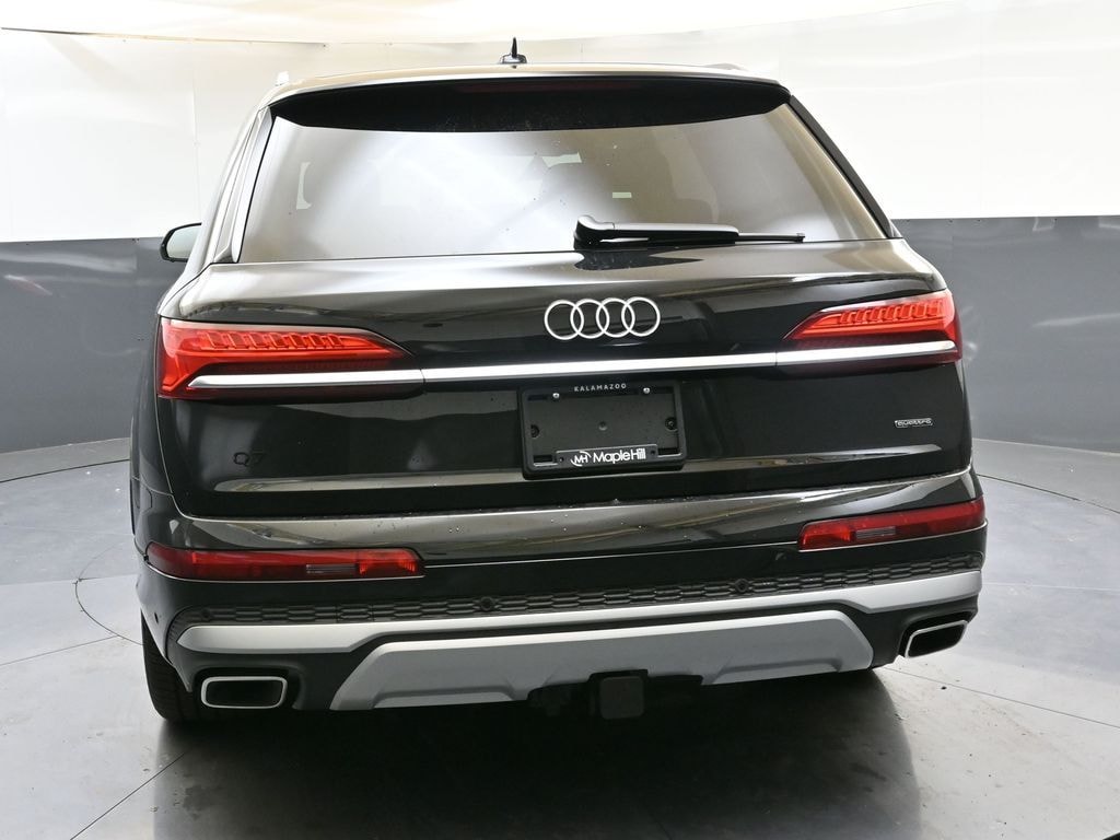 2025 Audi Q7 Premium Plus, Mythos Black Metallic, 3.0L TFSI V6 engine, Adaptive cruise assist with lane guidance, Rear cross-traffic warning, Blind Spot Warning, 8-Speed Automatic with Tiptronic, quattro, Black Leather, 7-Pin Adapter, Auto-dimming door mirrors, Auto-dimming Rear-View mirror, Bang & Olufsen Premium Sound System with 3D Sound, Comfort Adaptive Air Suspension, Convenience Package, Dual front side impact airbags, Executive Plus Package, Exterior Parking Camera Rear, Four-Zone Automatic Climate Control, Front fog lights, Front Seats with Ventilation, Garage door transmitter: HomeLink, Heated door mirrors, Heated Front Bucket Seats, Heated Rear Seats, Heated Steering Wheel, LED Interior Lighting Package Plus, Memory seat, Navigation System, Outside temperature display, Power Liftgate, Power moonroof: Panoramic, Power Soft-Closing Doors, Premium Plus Package, Rain sensing wipers, Rear Door/Side Windows and Tailgate Sunshades, Rear fog lights, Reclining 3rd row seat, Top View Camera System, Traffic Sign Recognition, Trailer Hitch, Wheels: 21" 5-Double-Spoke Design, Wireless Phone Charging Pad.